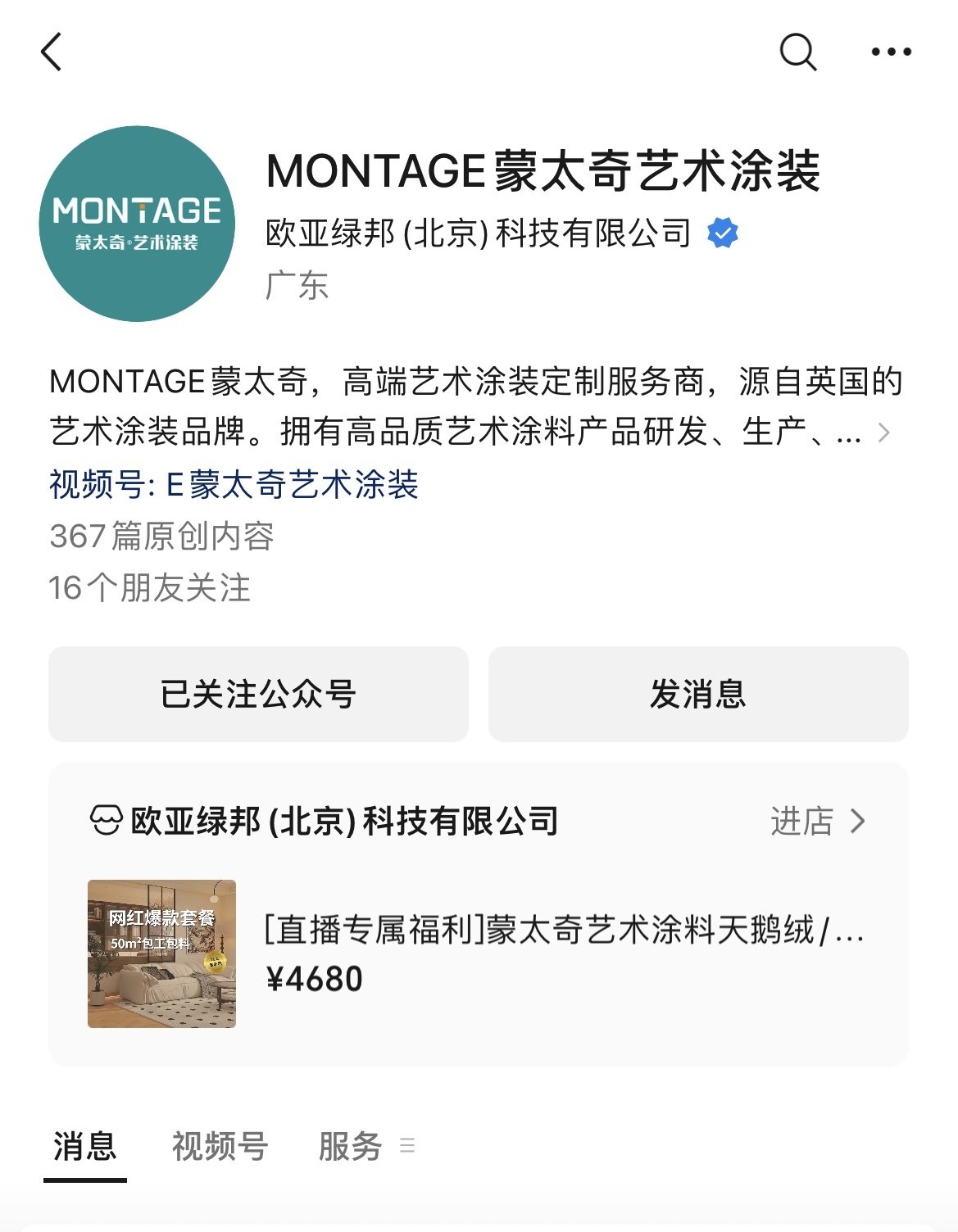 通過微信客戶端掃描產(chǎn)品包裝側(cè)封處的【官方微信公眾號(hào)二維碼】,對【MONTAGE蒙太奇藝術(shù)涂裝】官方公眾號(hào)的關(guān)注與綁定。此平臺(tái)為品牌唯一授權(quán)的防偽查詢?nèi)肟凇?/span>